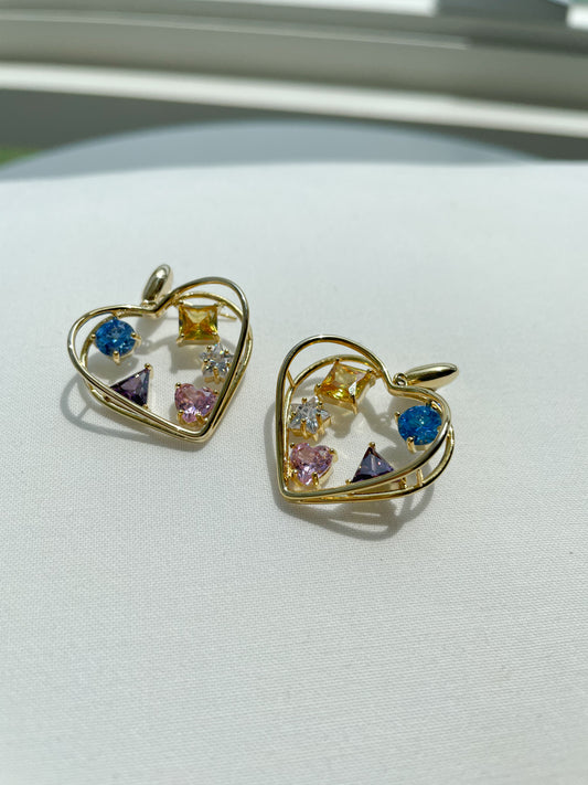 Gilded Heart Gemstone Earrings