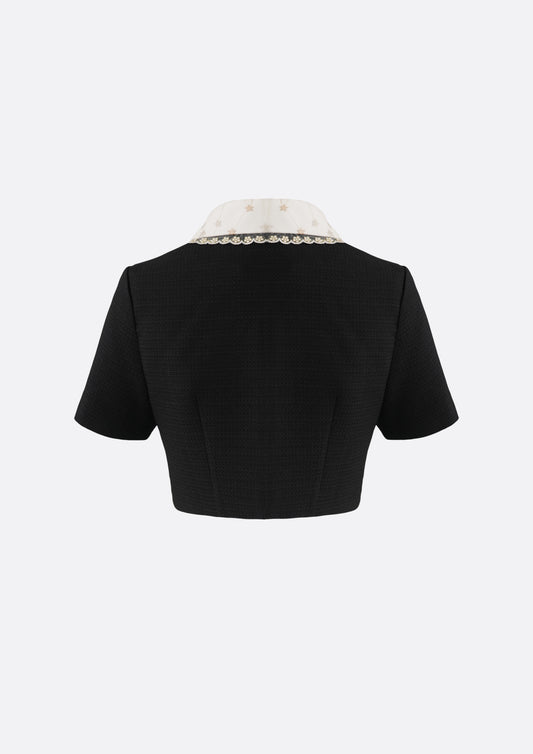 Amélie Pearl-Trimmed Tweed Jacket (BLACK)