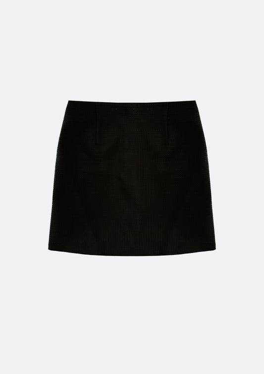 Grace Organza-Trim Wool A-line Skirt (BLACK)